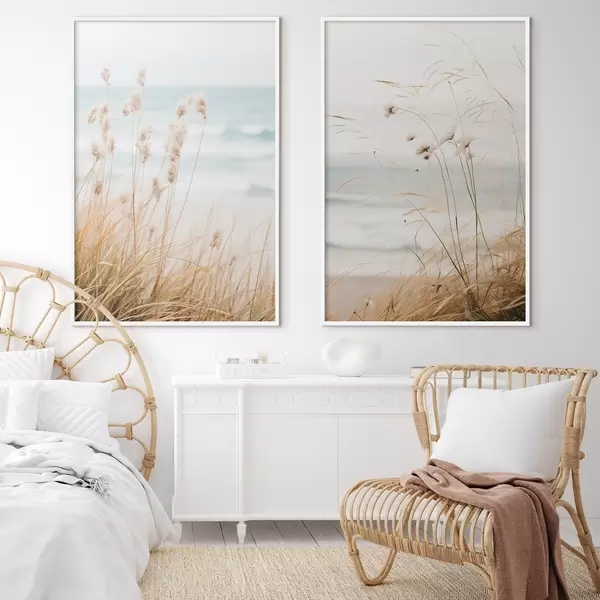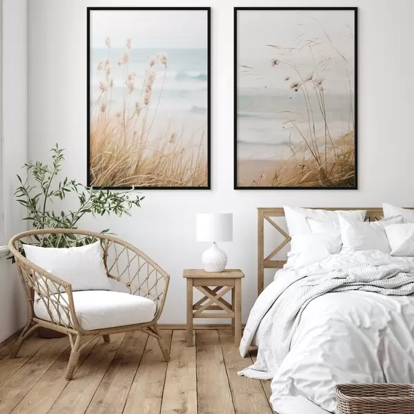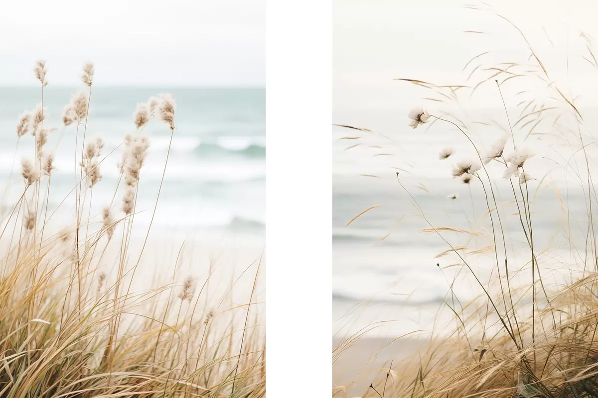 SākumlapaPlakātu katalogsPlakāti buferiPlakāts Augsta zāle ar pūkainām sēklu galviņām, smilšaina pludmale un okeāna viļņi fonā, maiga un pieklusināta krāsu palete Nr d00650