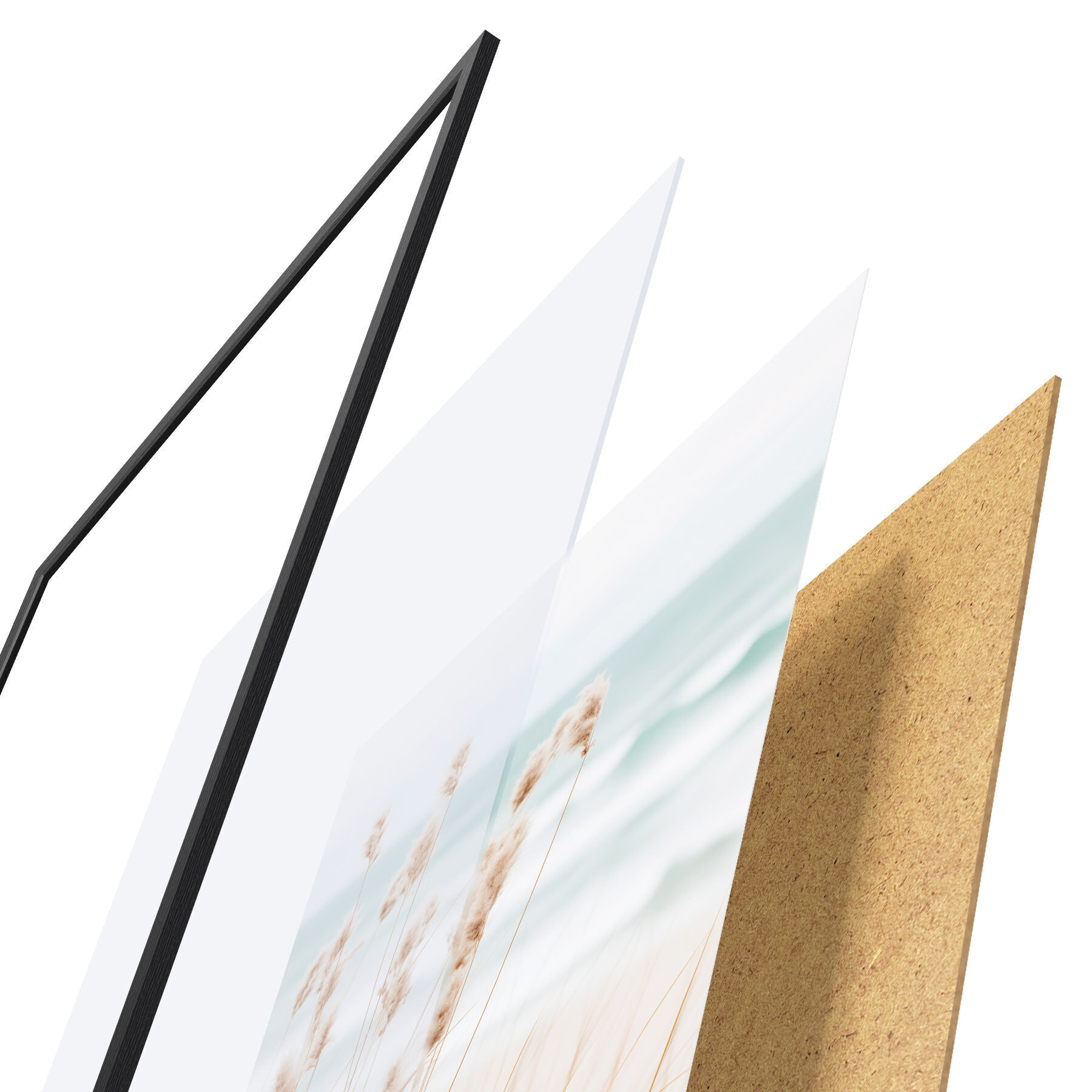 Plakāts sastāv no rāmja, pleksstikla, iespiestā attēla un skaidu plātnes pamatnes. Plakātu var uzreiz piekarināt pie sienas, pateicoties aizmugurē esošajiem stiprinājumiem.