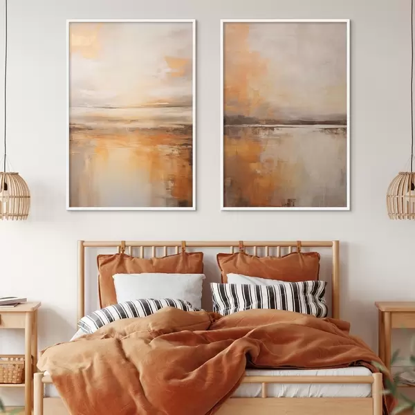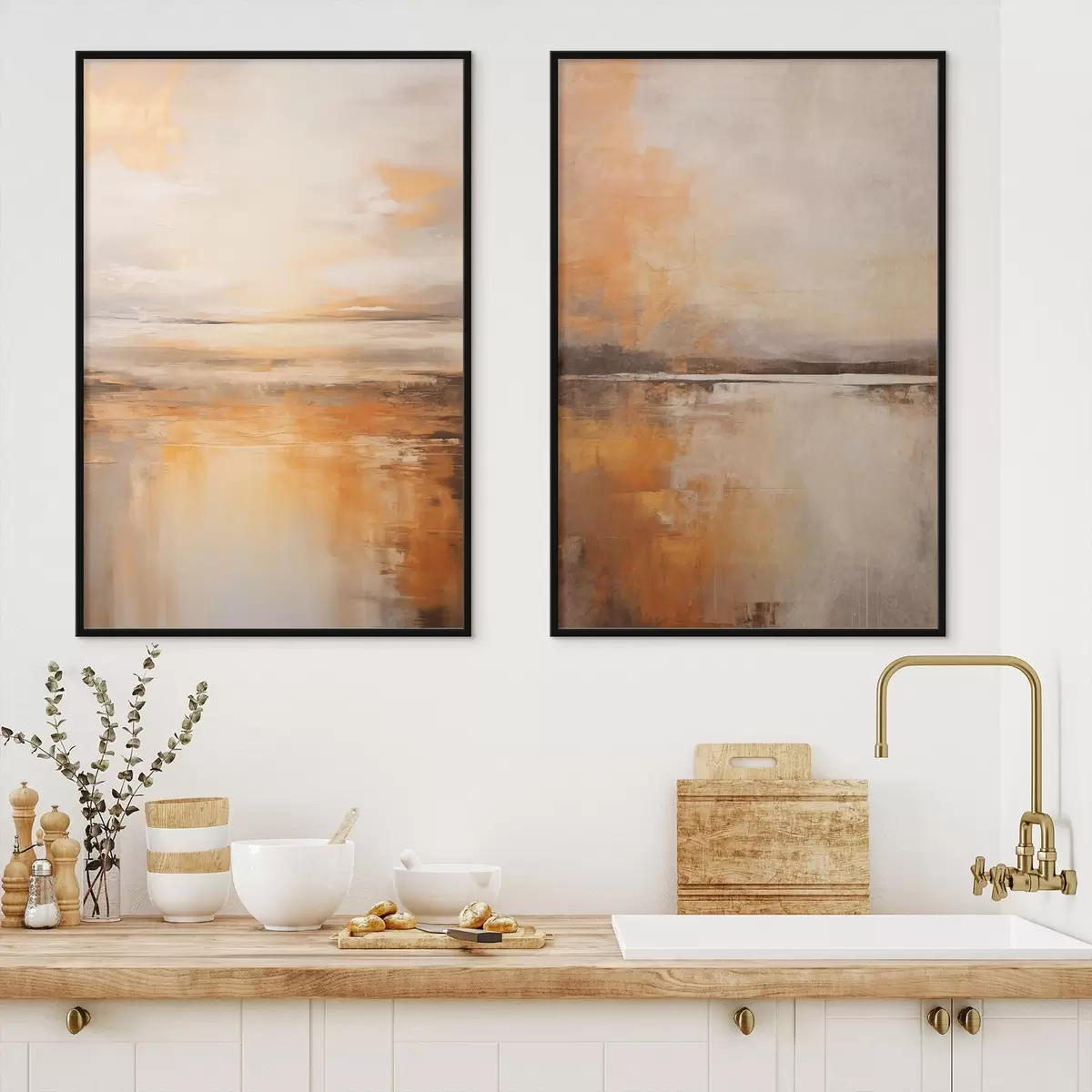 SākumlapaPlakātu katalogsModuļu plakātiPlakāts Pludmales ainavas abstrakta glezna ar mierīgu okeānu, oranžām smiltīm un apmākušām debesīm ar sauli Nr d00653