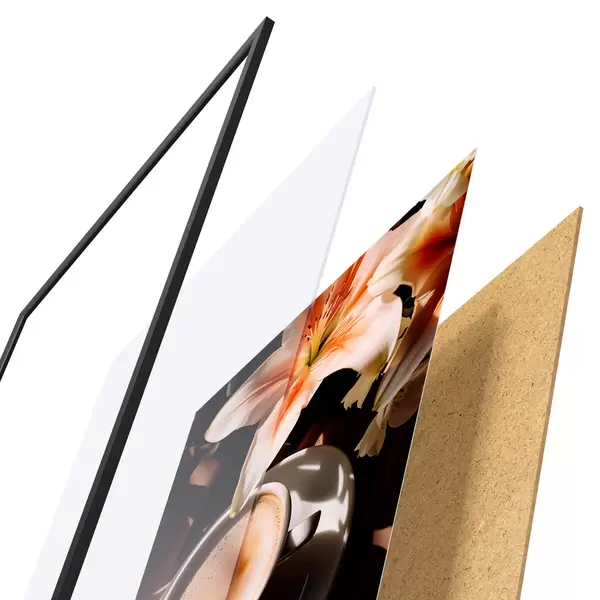 Plakāts sastāv no rāmja, pleksstikla, iespiestā attēla un skaidu plātnes pamatnes. Plakātu var uzreiz piekarināt pie sienas, pateicoties aizmugurē esošajiem stiprinājumiem.