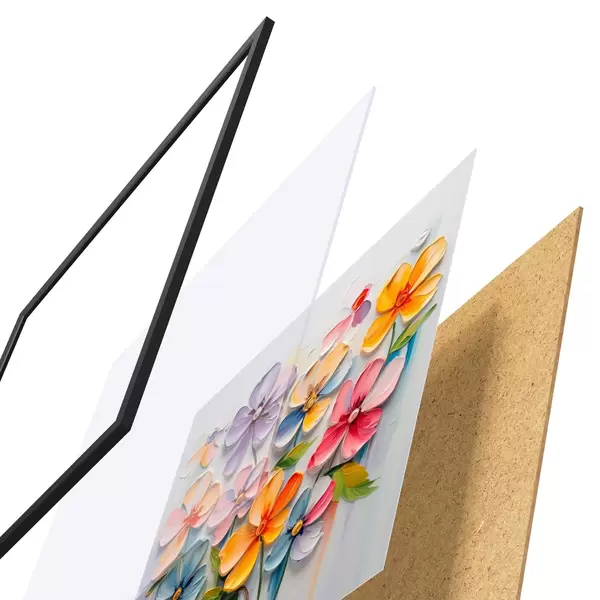 Plakāts sastāv no rāmja, pleksstikla, iespiestā attēla un skaidu plātnes pamatnes. Plakātu var uzreiz piekarināt pie sienas, pateicoties aizmugurē esošajiem stiprinājumiem.