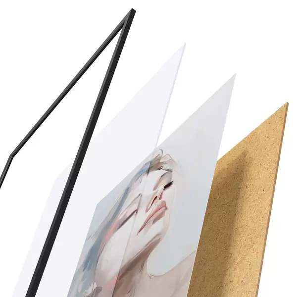 Plakāts sastāv no rāmja, pleksstikla, iespiestā attēla un skaidu plātnes pamatnes. Plakātu var uzreiz piekarināt pie sienas, pateicoties aizmugurē esošajiem stiprinājumiem.