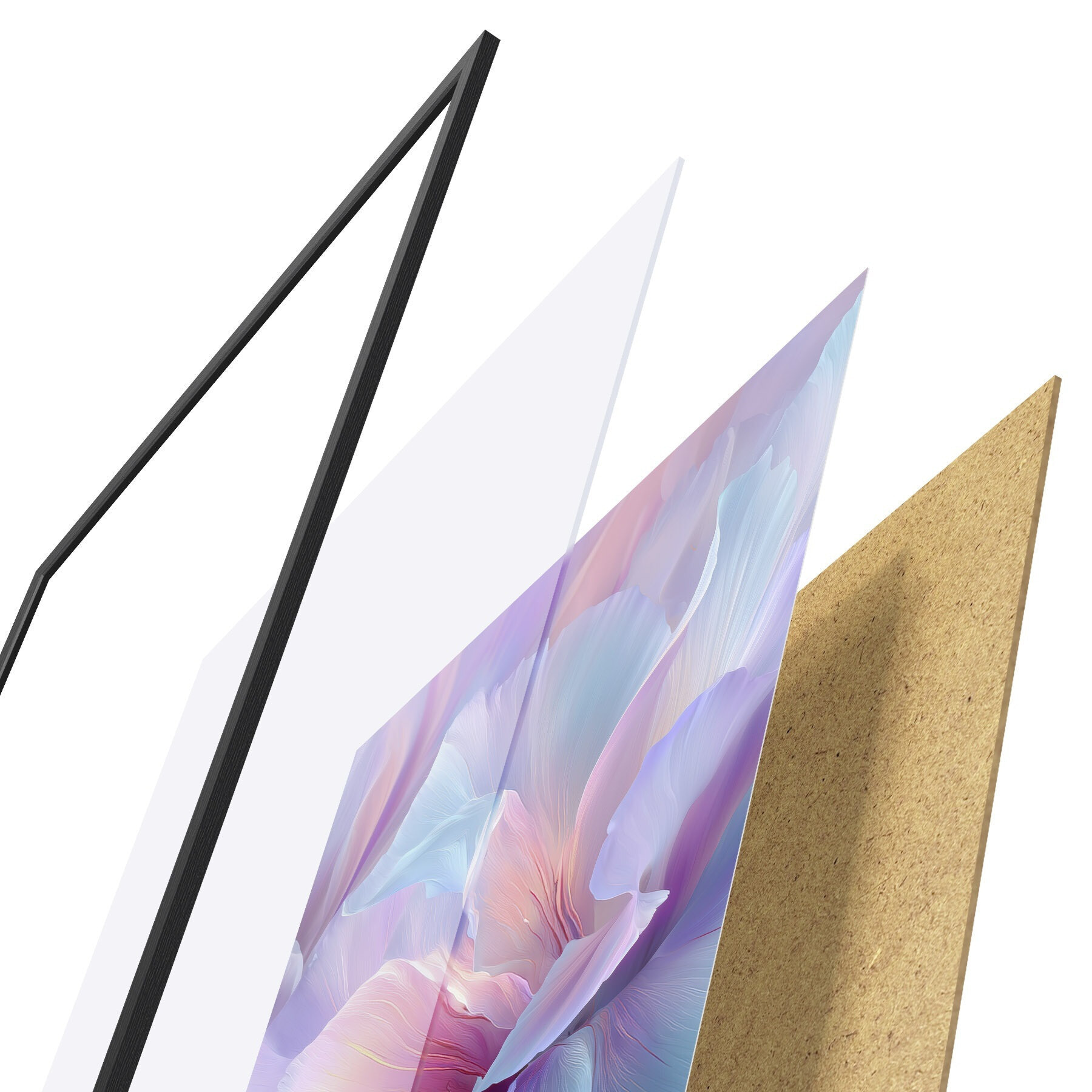 Plakāts sastāv no rāmja, pleksstikla, iespiestā attēla un skaidu plātnes pamatnes. Plakātu var uzreiz piekarināt pie sienas, pateicoties aizmugurē esošajiem stiprinājumiem.