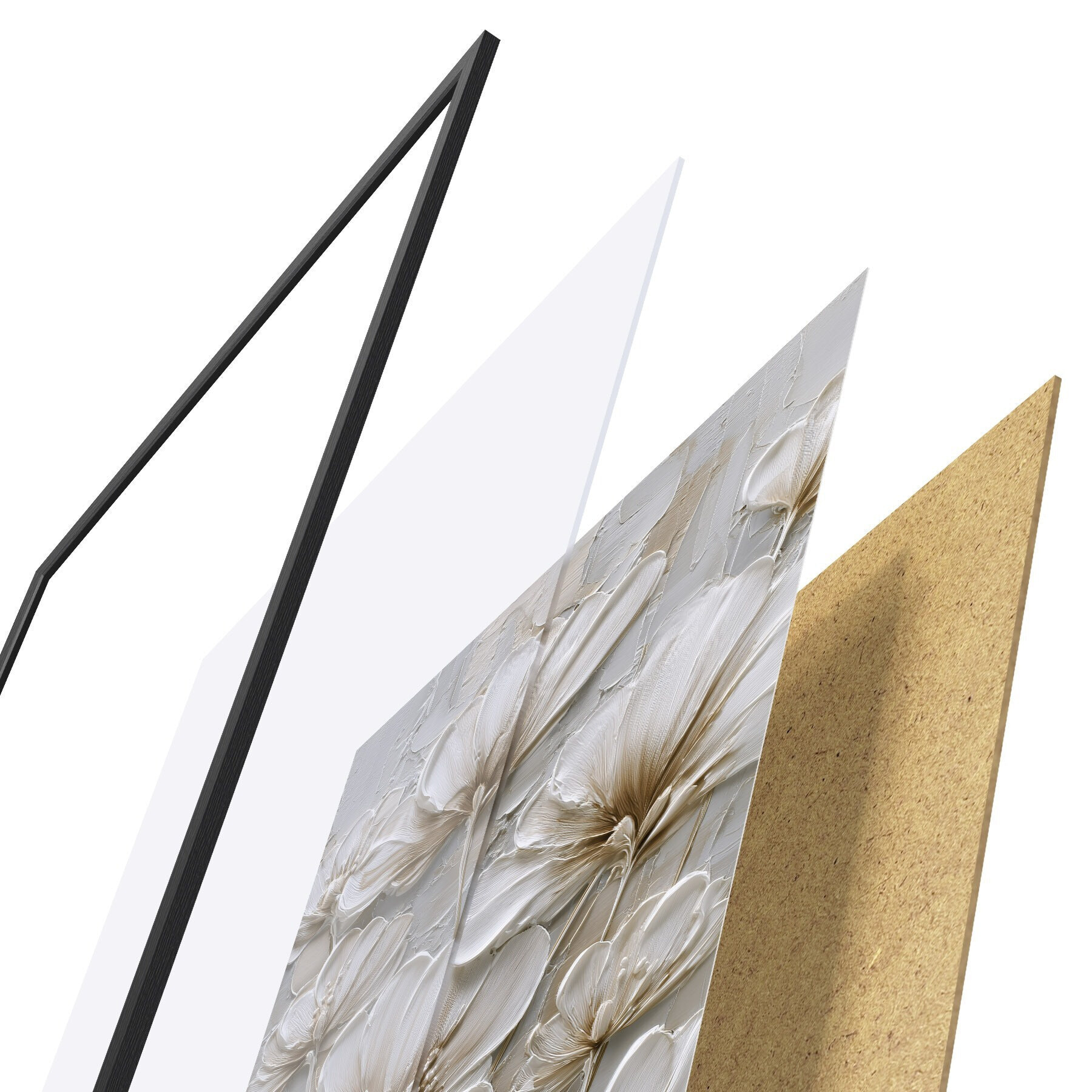 Plakāts sastāv no rāmja, pleksstikla, iespiestā attēla un skaidu plātnes pamatnes. Plakātu var uzreiz piekarināt pie sienas, pateicoties aizmugurē esošajiem stiprinājumiem.