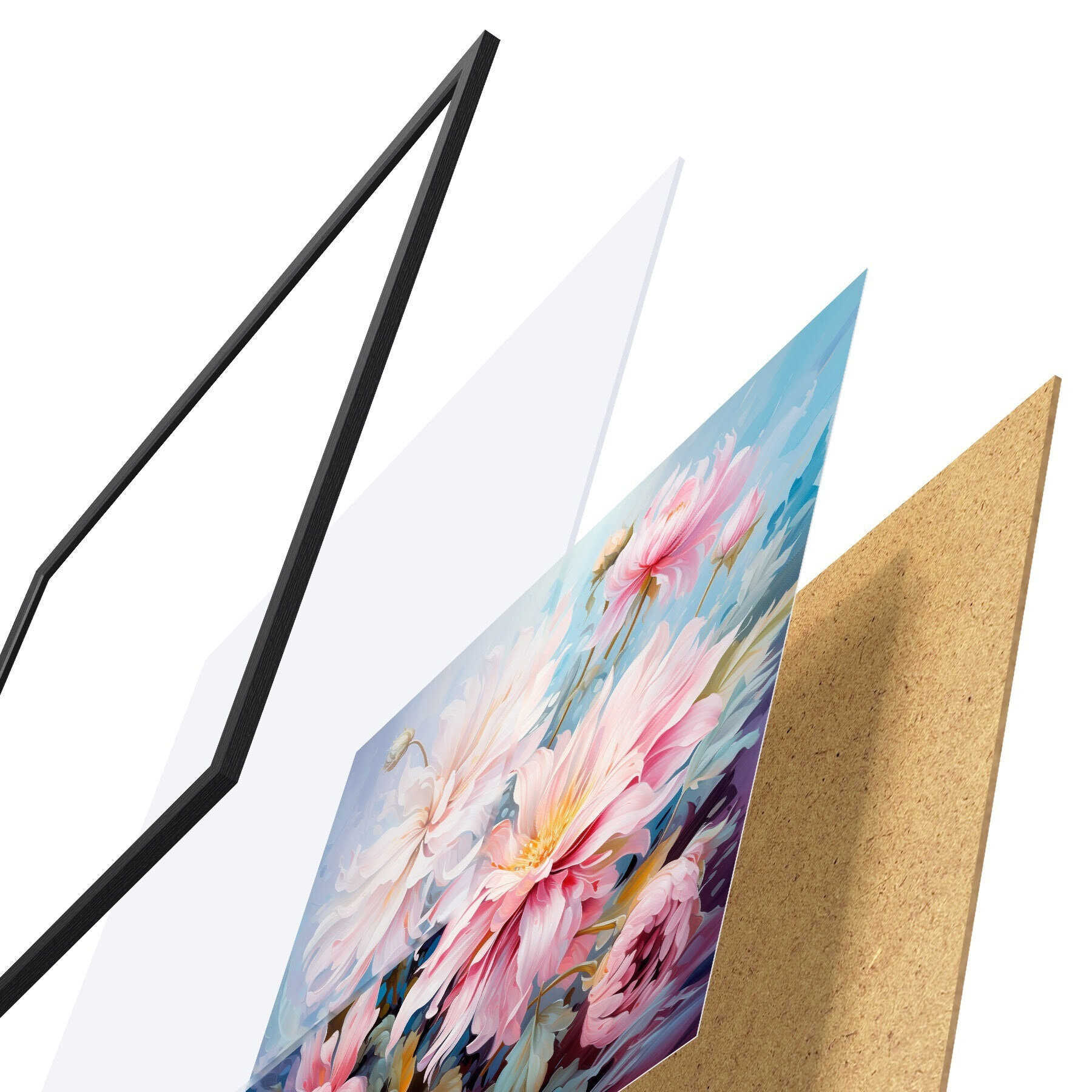 Plakāts sastāv no rāmja, pleksstikla, iespiestā attēla un skaidu plātnes pamatnes. Plakātu var uzreiz piekarināt pie sienas, pateicoties aizmugurē esošajiem stiprinājumiem.