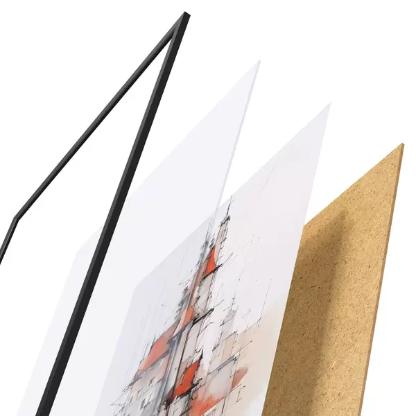 Plakāts sastāv no rāmja, pleksstikla, iespiestā attēla un skaidu plātnes pamatnes. Plakātu var uzreiz piekarināt pie sienas, pateicoties aizmugurē esošajiem stiprinājumiem.