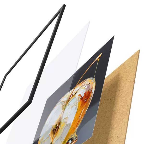 Plakāts sastāv no rāmja, pleksstikla, iespiestā attēla un skaidu plātnes pamatnes. Plakātu var uzreiz piekarināt pie sienas, pateicoties aizmugurē esošajiem stiprinājumiem.
