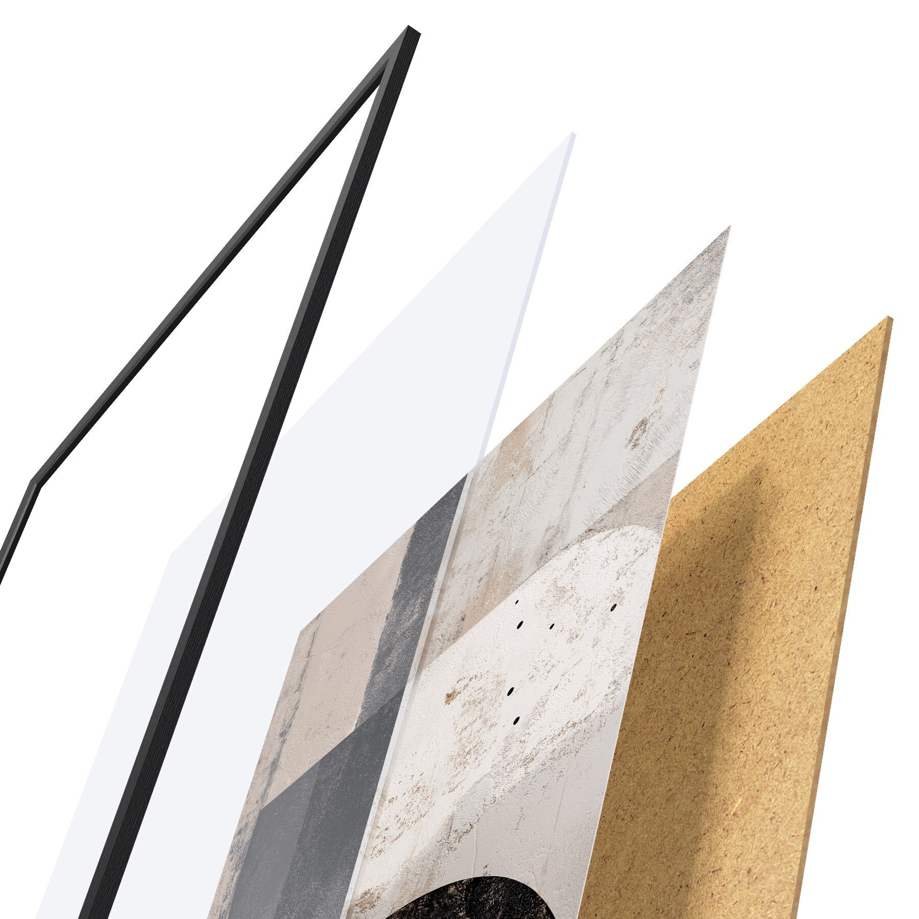 Plakāts sastāv no rāmja, pleksstikla, iespiestā attēla un skaidu plātnes pamatnes. Plakātu var uzreiz piekarināt pie sienas, pateicoties aizmugurē esošajiem stiprinājumiem.