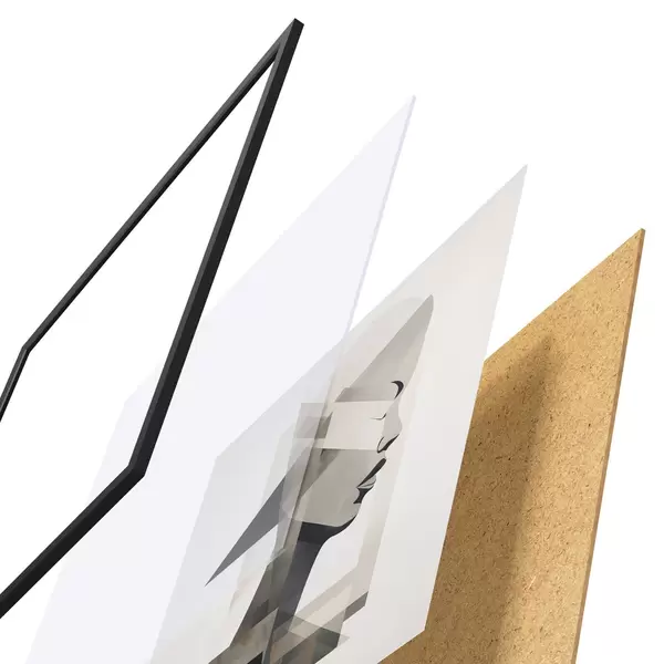 Plakāts sastāv no rāmja, pleksstikla, iespiestā attēla un skaidu plātnes pamatnes. Plakātu var uzreiz piekarināt pie sienas, pateicoties aizmugurē esošajiem stiprinājumiem.