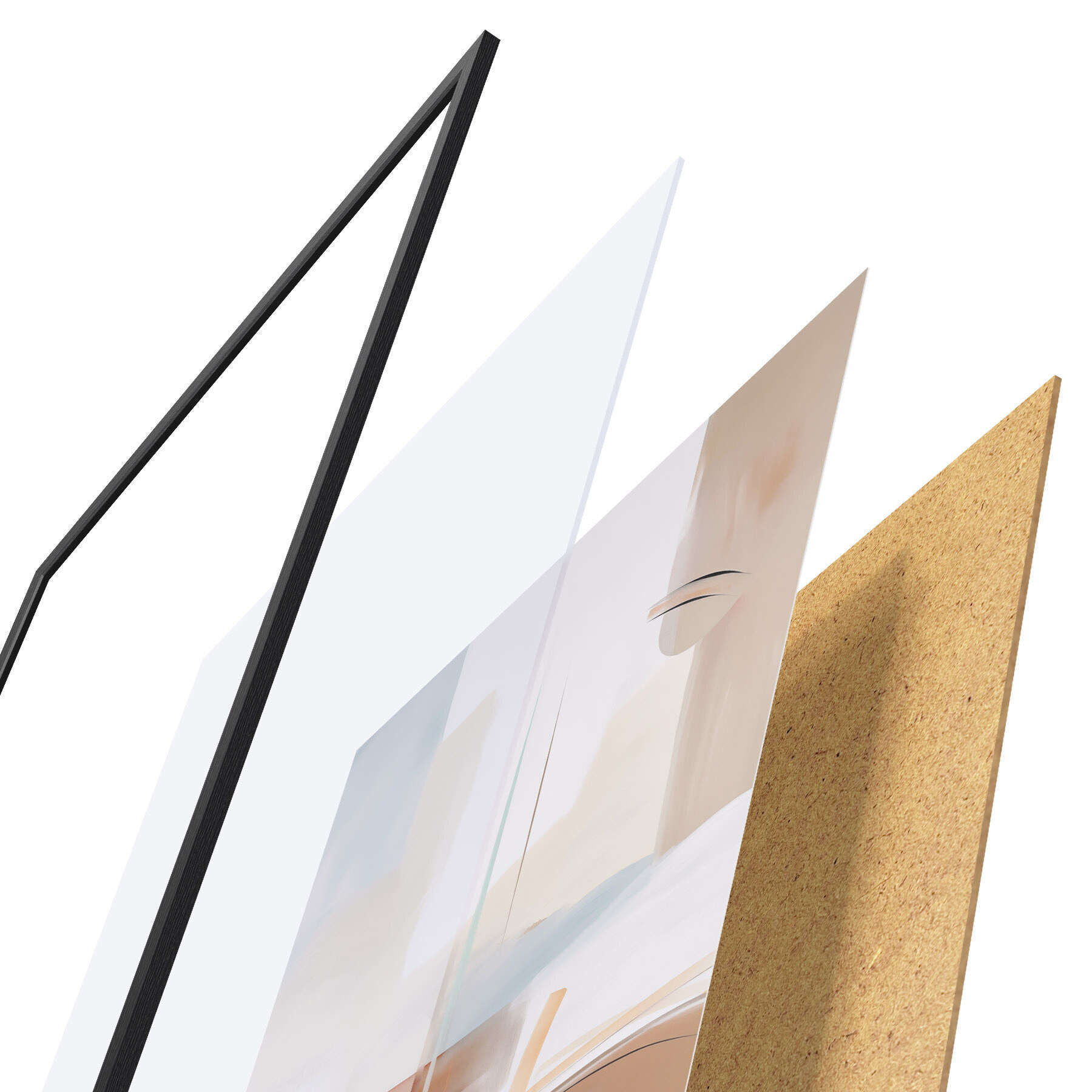 Plakāts sastāv no rāmja, pleksstikla, iespiestā attēla un skaidu plātnes pamatnes. Plakātu var uzreiz piekarināt pie sienas, pateicoties aizmugurē esošajiem stiprinājumiem.