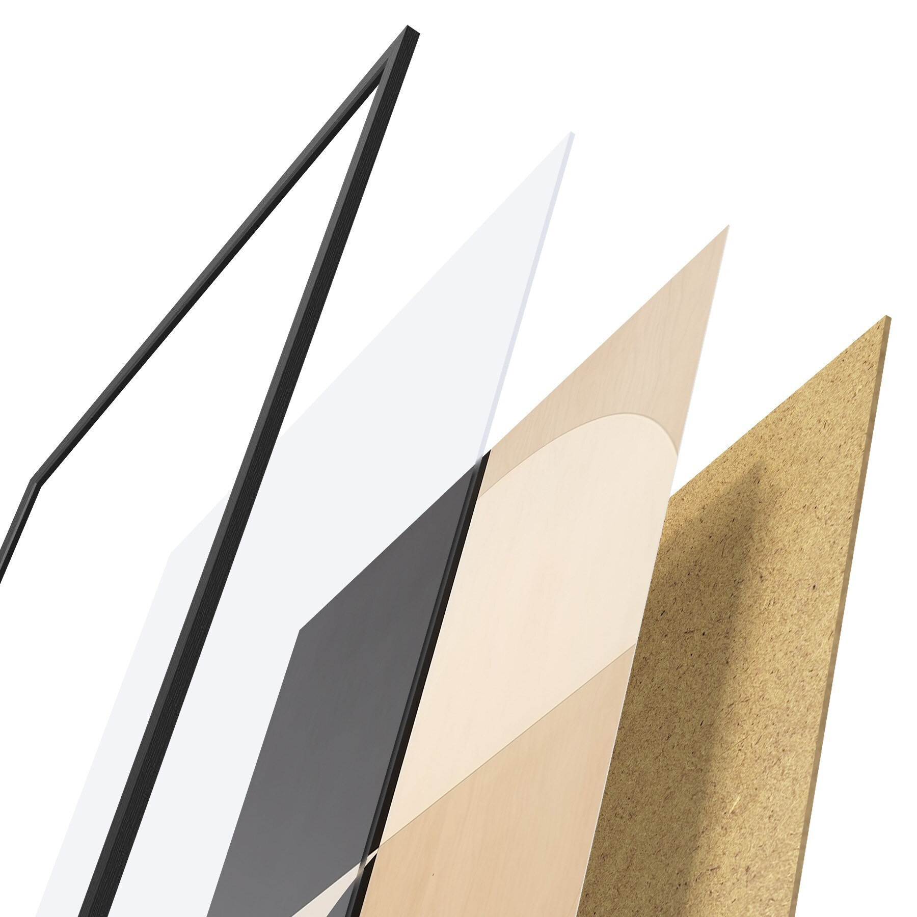 Plakāts sastāv no rāmja, pleksstikla, iespiestā attēla un skaidu plātnes pamatnes. Plakātu var uzreiz piekarināt pie sienas, pateicoties aizmugurē esošajiem stiprinājumiem.