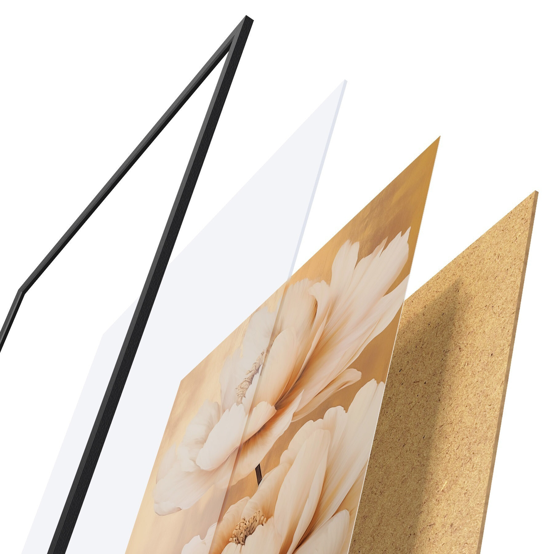 Plakāts sastāv no rāmja, pleksstikla, iespiestā attēla un skaidu plātnes pamatnes. Plakātu var uzreiz piekarināt pie sienas, pateicoties aizmugurē esošajiem stiprinājumiem.