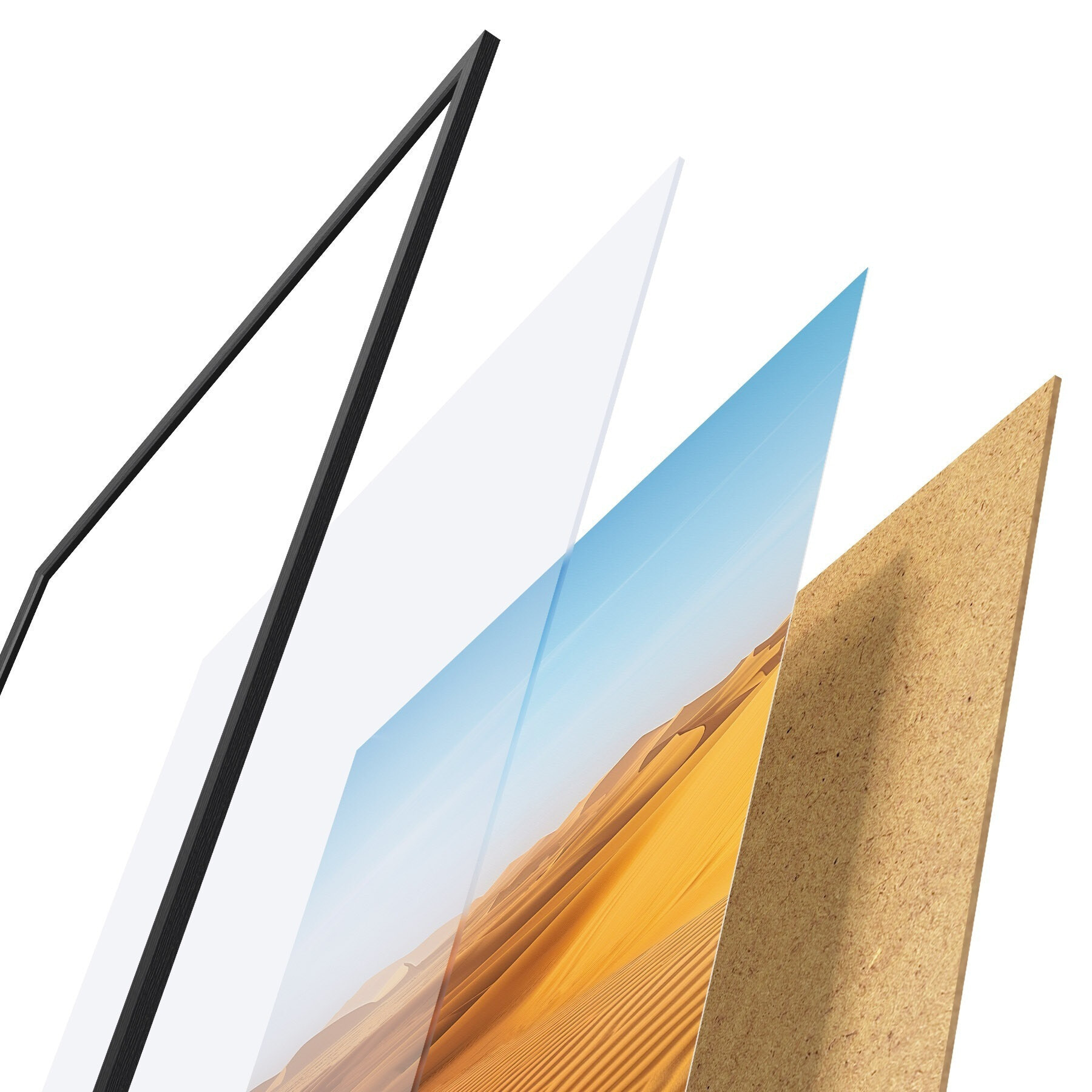 Plakāts sastāv no rāmja, pleksstikla, iespiestā attēla un skaidu plātnes pamatnes. Plakātu var uzreiz piekarināt pie sienas, pateicoties aizmugurē esošajiem stiprinājumiem.