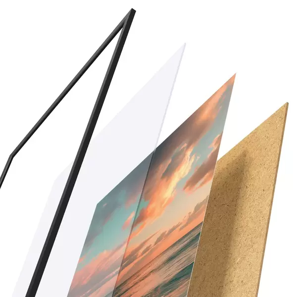 Plakāts sastāv no rāmja, pleksstikla, iespiestā attēla un skaidu plātnes pamatnes. Plakātu var uzreiz piekarināt pie sienas, pateicoties aizmugurē esošajiem stiprinājumiem.