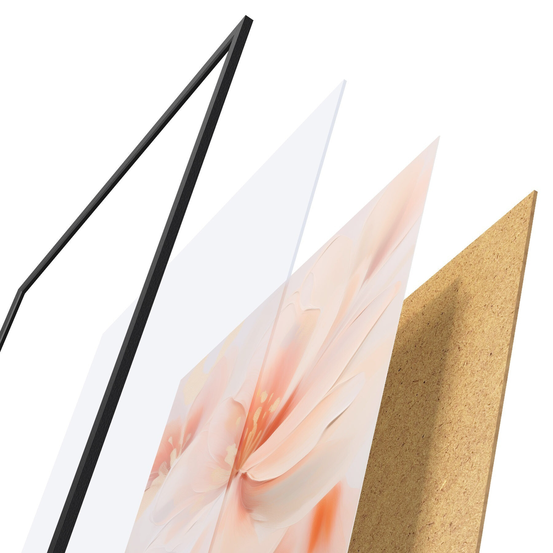 Plakāts sastāv no rāmja, pleksstikla, iespiestā attēla un skaidu plātnes pamatnes. Plakātu var uzreiz piekarināt pie sienas, pateicoties aizmugurē esošajiem stiprinājumiem.