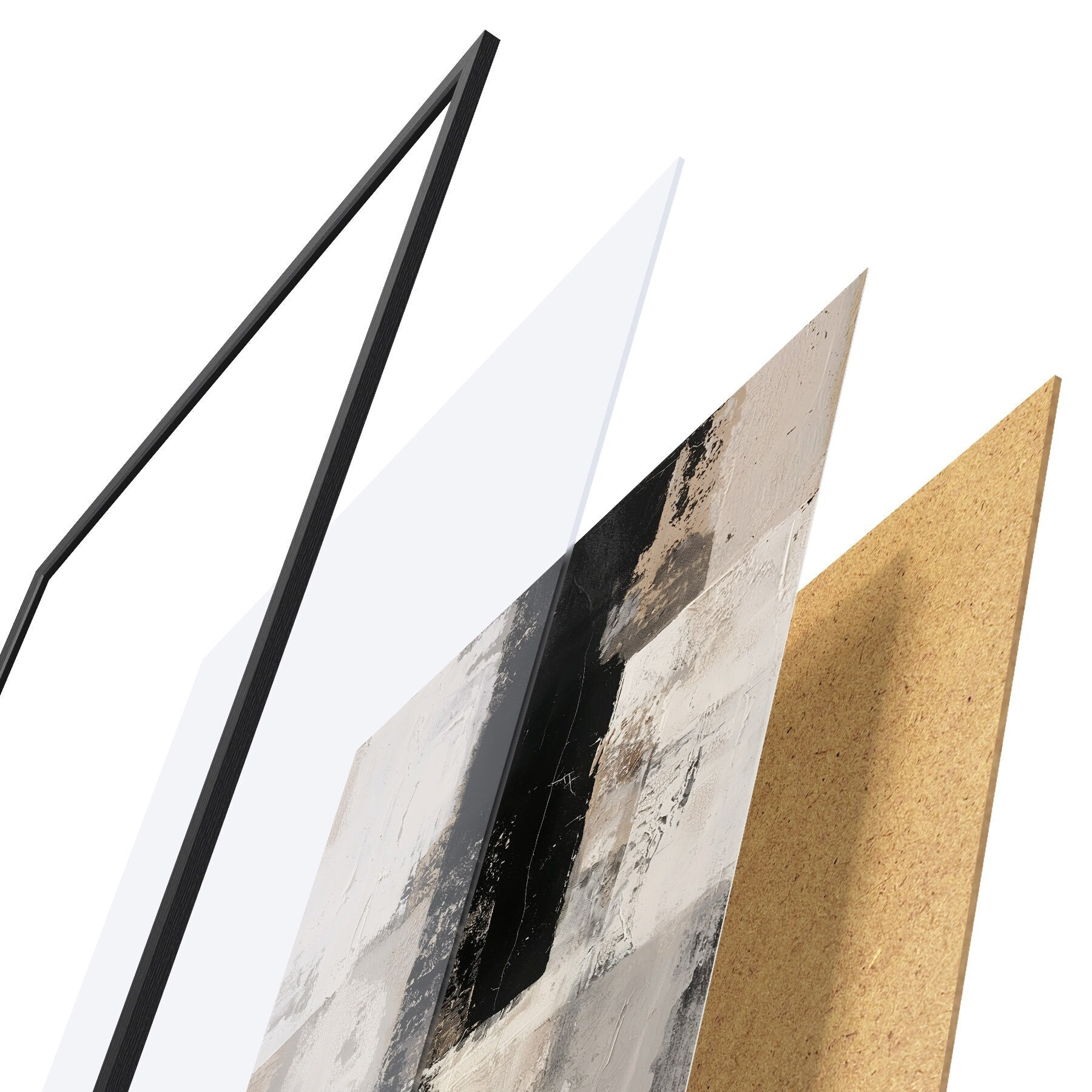 Plakāts sastāv no rāmja, pleksstikla, iespiestā attēla un skaidu plātnes pamatnes. Plakātu var uzreiz piekarināt pie sienas, pateicoties aizmugurē esošajiem stiprinājumiem.