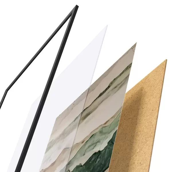Plakāts sastāv no rāmja, pleksstikla, iespiestā attēla un skaidu plātnes pamatnes. Plakātu var uzreiz piekarināt pie sienas, pateicoties aizmugurē esošajiem stiprinājumiem.