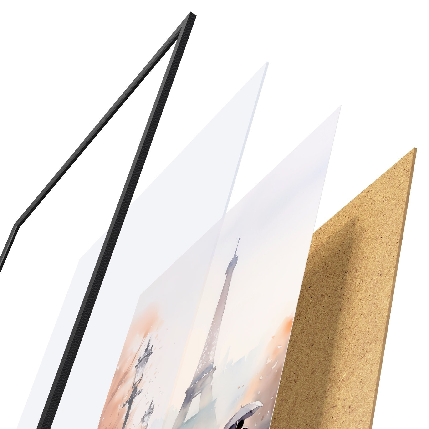 Plakāts sastāv no rāmja, pleksstikla, iespiestā attēla un skaidu plātnes pamatnes. Plakātu var uzreiz piekarināt pie sienas, pateicoties aizmugurē esošajiem stiprinājumiem.