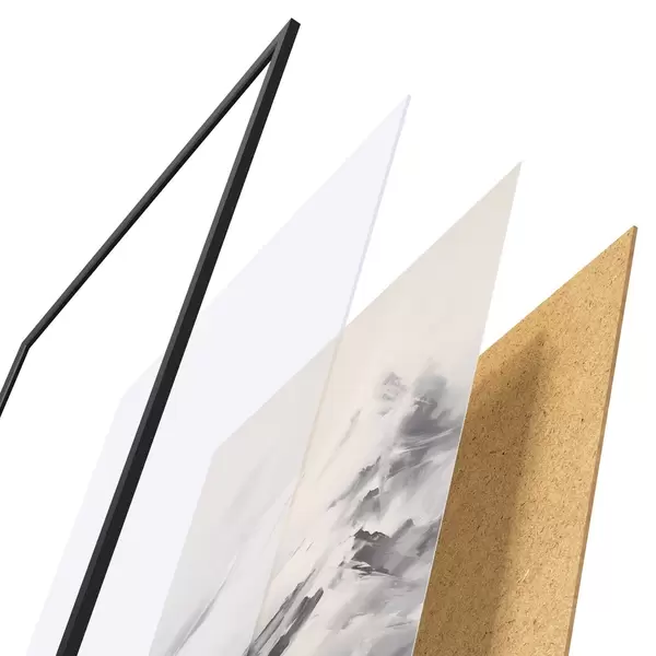 Plakāts sastāv no rāmja, pleksstikla, iespiestā attēla un skaidu plātnes pamatnes. Plakātu var uzreiz piekarināt pie sienas, pateicoties aizmugurē esošajiem stiprinājumiem.