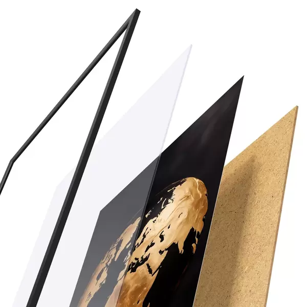 Plakāts sastāv no rāmja, pleksstikla, iespiestā attēla un skaidu plātnes pamatnes. Plakātu var uzreiz piekarināt pie sienas, pateicoties aizmugurē esošajiem stiprinājumiem.