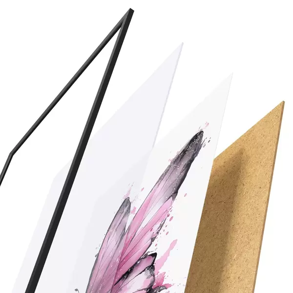 Plakāts sastāv no rāmja, pleksstikla, iespiestā attēla un skaidu plātnes pamatnes. Plakātu var uzreiz piekarināt pie sienas, pateicoties aizmugurē esošajiem stiprinājumiem.
