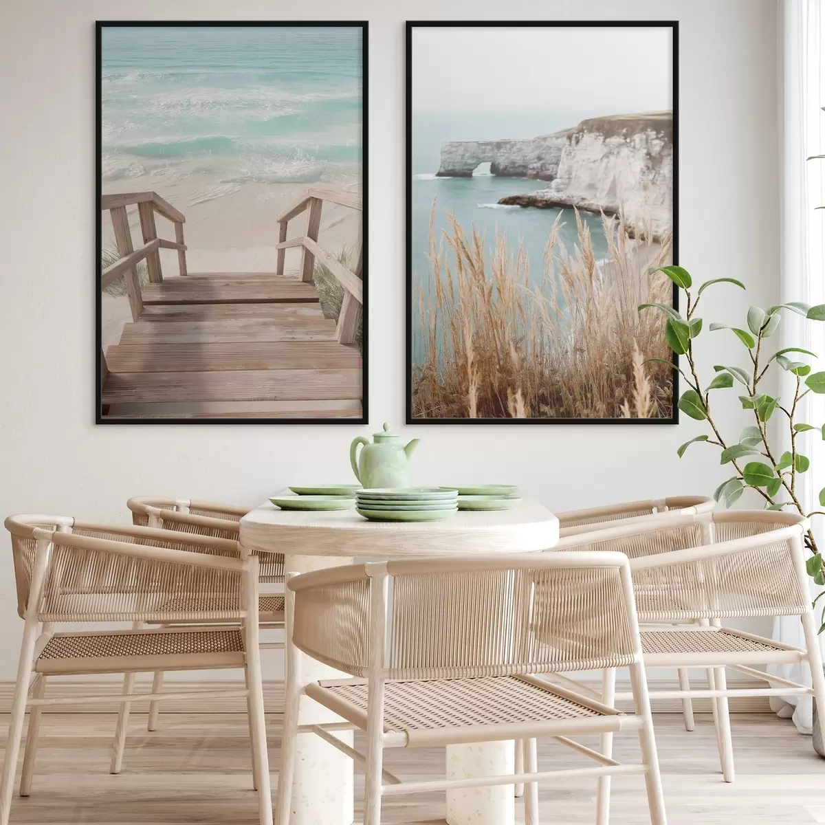 Plakāts Piekrastes klintis un sausas zāles pie tirkīza krāsas jūras Nr d00875