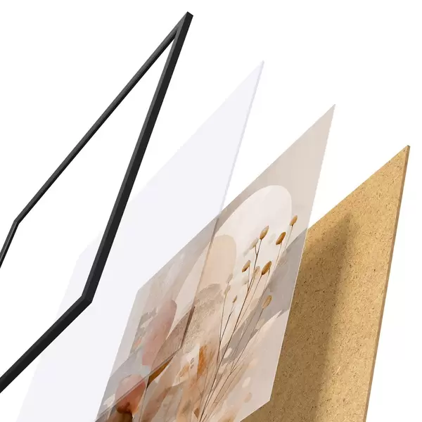 Plakāts sastāv no rāmja, pleksstikla, iespiestā attēla un skaidu plātnes pamatnes. Plakātu var uzreiz piekarināt pie sienas, pateicoties aizmugurē esošajiem stiprinājumiem.