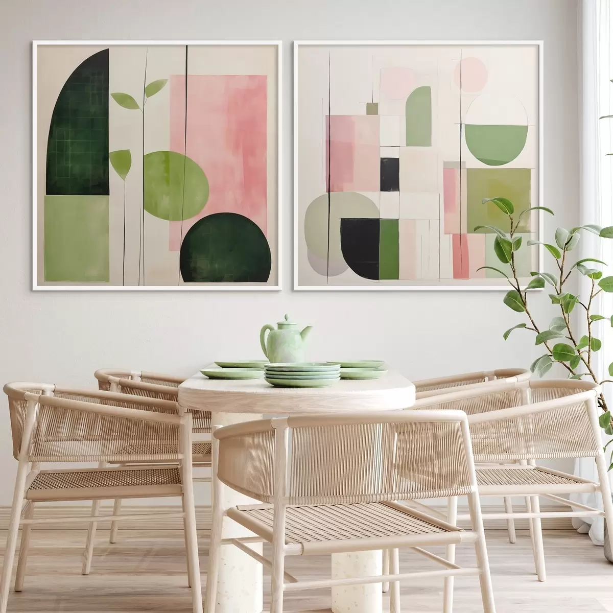 Plakāts Minimālisma diptihs ar stilizētu floru un ģeometriju Nr d00894