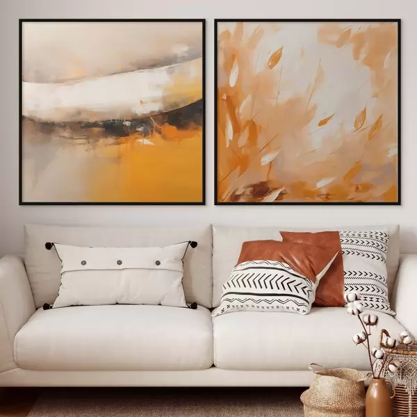Plakāts Abstrakts diptihs eļļas stilā ar dzeltenoranžiem un melniem toņiem Nr d00897