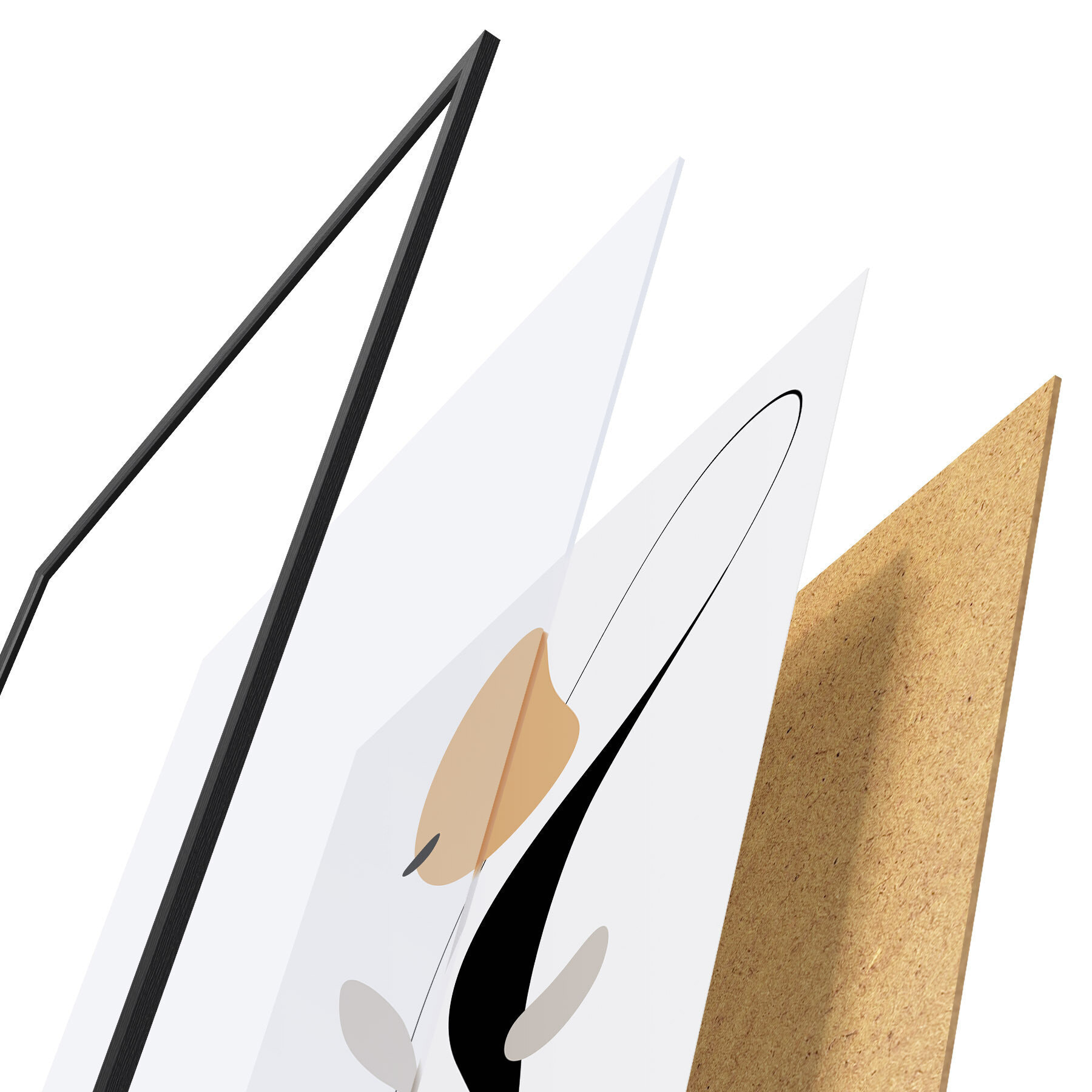 Plakāts sastāv no rāmja, pleksstikla, iespiestā attēla un skaidu plātnes pamatnes. Plakātu var uzreiz piekarināt pie sienas, pateicoties aizmugurē esošajiem stiprinājumiem.