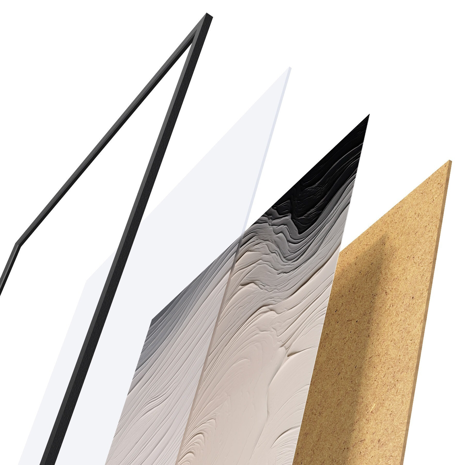 Plakāts sastāv no rāmja, pleksstikla, iespiestā attēla un skaidu plātnes pamatnes. Plakātu var uzreiz piekarināt pie sienas, pateicoties aizmugurē esošajiem stiprinājumiem.