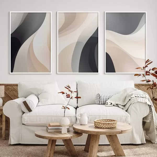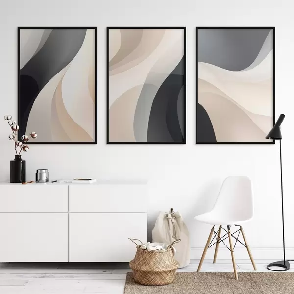 Plakāts Minimālas plūstošas līknes krēmkrāsā, pelēkbrūnā un melnā krāsā Nr d00962