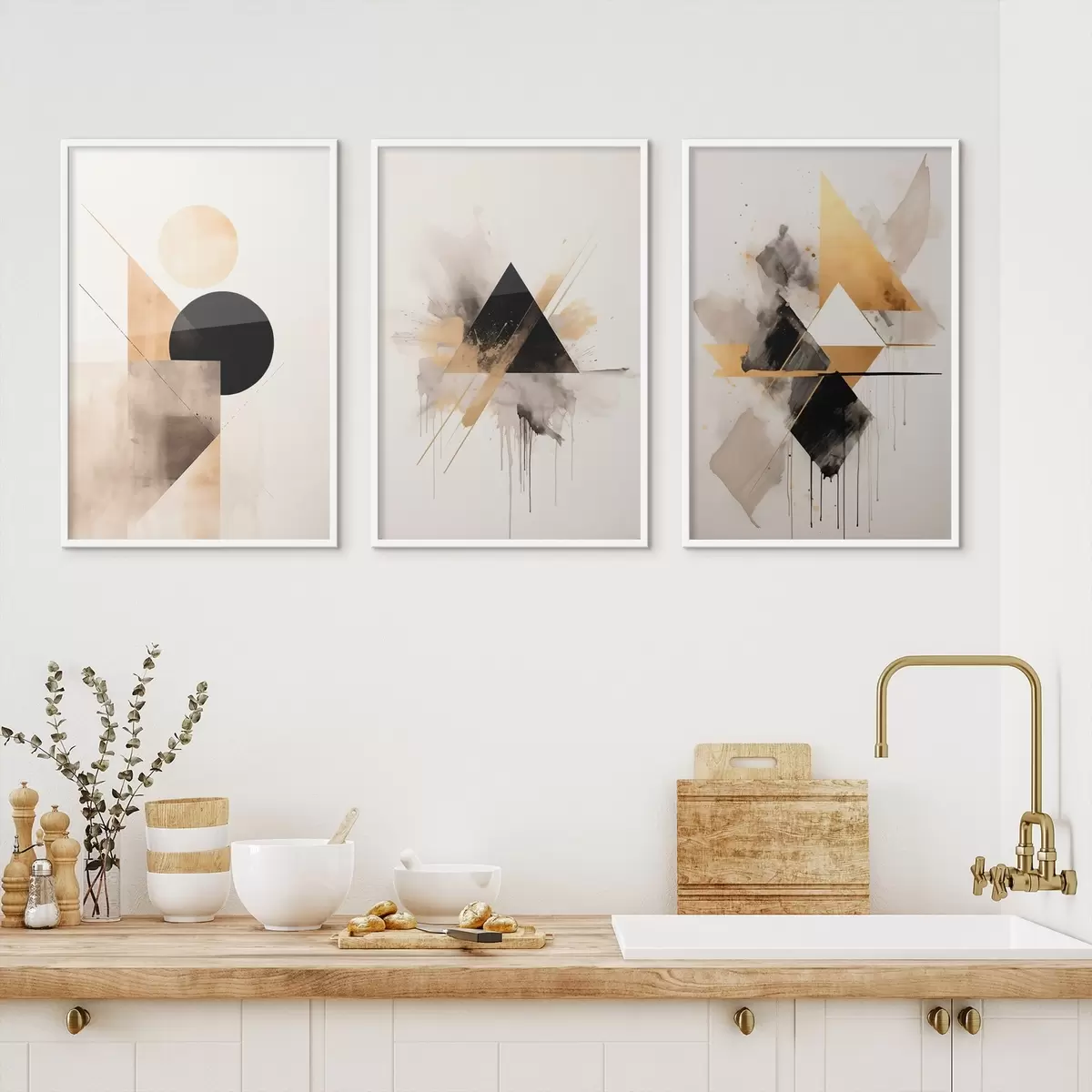Plakāts Ģeometriski trīsstūri ar tintes šļakatām, melnā un okera krāsā Nr d00963