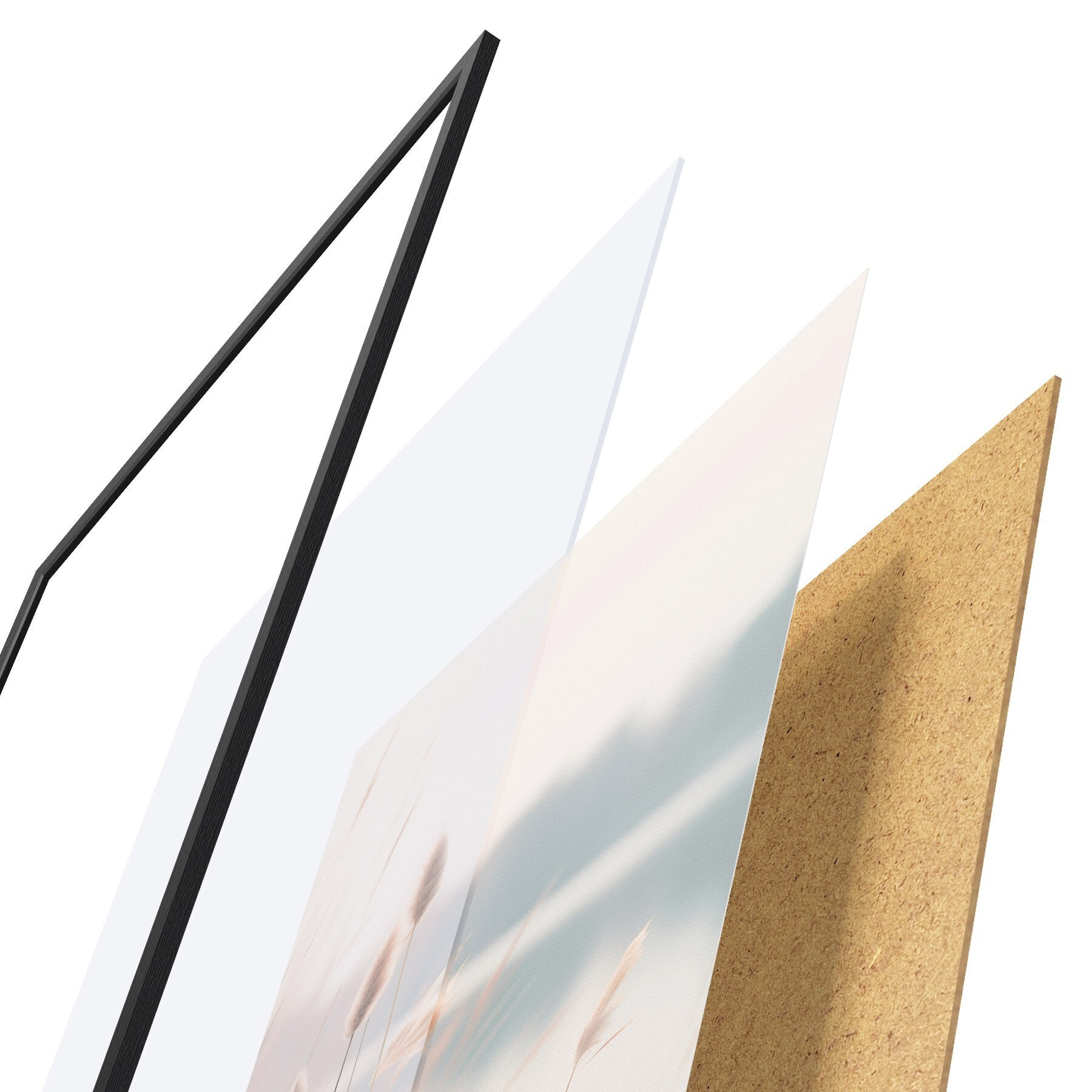 Plakāts sastāv no rāmja, pleksstikla, iespiestā attēla un skaidu plātnes pamatnes. Plakātu var uzreiz piekarināt pie sienas, pateicoties aizmugurē esošajiem stiprinājumiem.