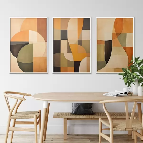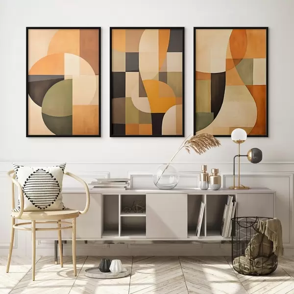 Plakāts Mīksti ģeometriski bloki smilškrāsā, terakotas un salvijas krāsā Nr d00975