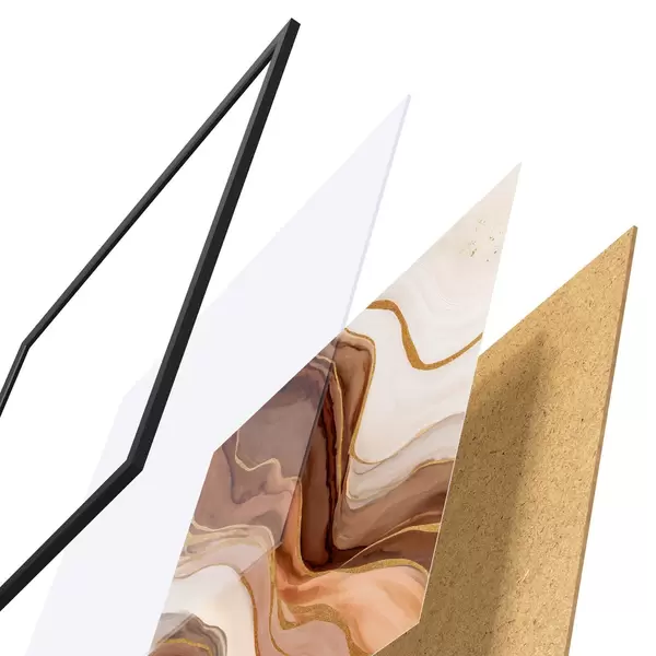 Plakāts sastāv no rāmja, pleksstikla, iespiestā attēla un skaidu plātnes pamatnes. Plakātu var uzreiz piekarināt pie sienas, pateicoties aizmugurē esošajiem stiprinājumiem.