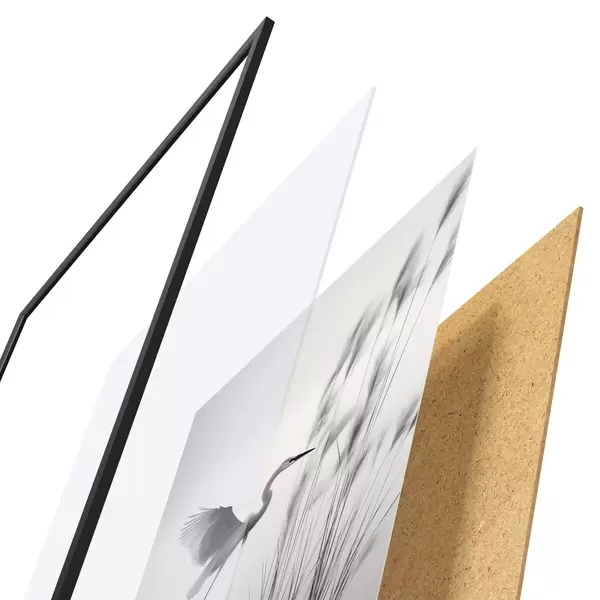 Plakāts sastāv no rāmja, pleksstikla, iespiestā attēla un skaidu plātnes pamatnes. Plakātu var uzreiz piekarināt pie sienas, pateicoties aizmugurē esošajiem stiprinājumiem.