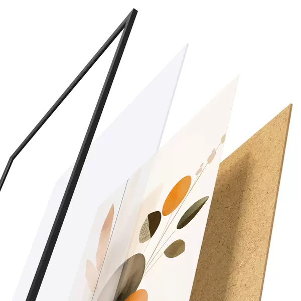 Plakāts sastāv no rāmja, pleksstikla, iespiestā attēla un skaidu plātnes pamatnes. Plakātu var uzreiz piekarināt pie sienas, pateicoties aizmugurē esošajiem stiprinājumiem.