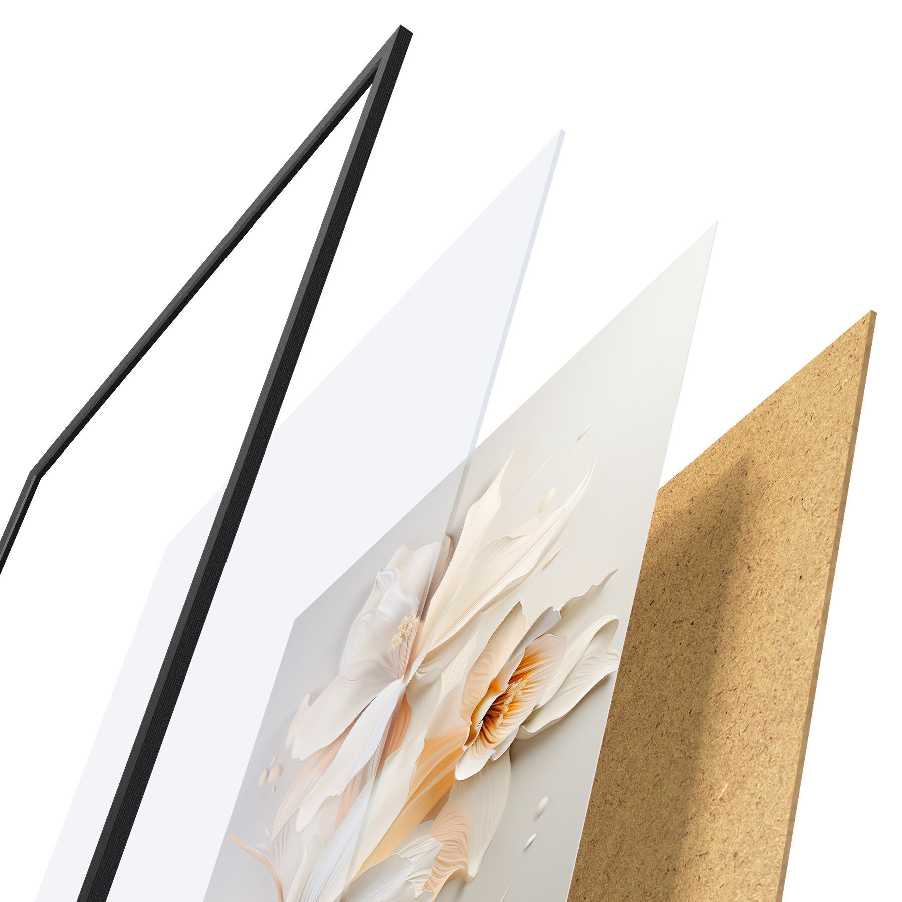 Plakāts sastāv no rāmja, pleksstikla, iespiestā attēla un skaidu plātnes pamatnes. Plakātu var uzreiz piekarināt pie sienas, pateicoties aizmugurē esošajiem stiprinājumiem.