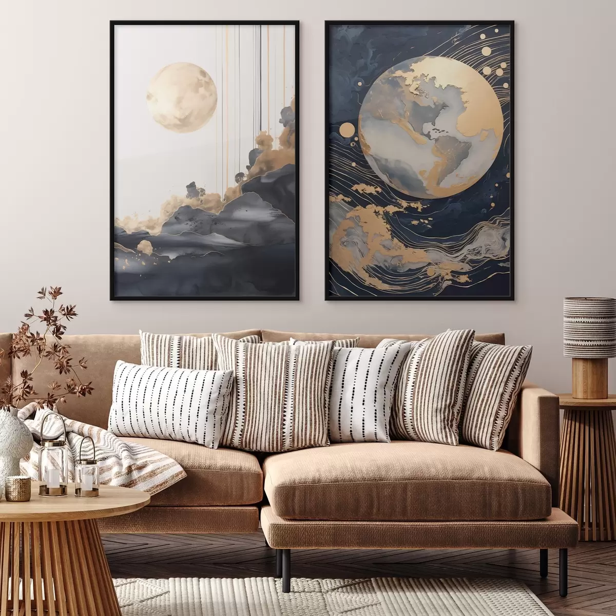 SākumlapaPlakātu katalogsModuļu plakātiPlakāts Teksturēta dekoratīva planēta kosmosā ar dzeltenām līnijām un punktiem, abstrakts stils, minimālisma un moderns Nr d01014