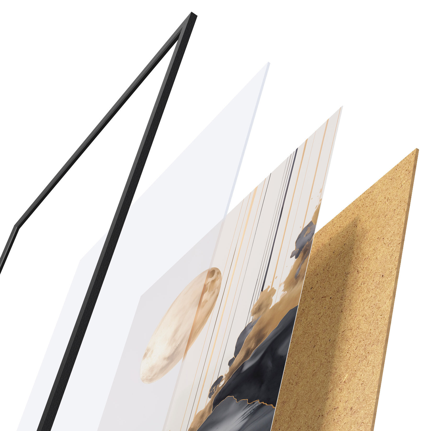 Plakāts sastāv no rāmja, pleksstikla, iespiestā attēla un skaidu plātnes pamatnes. Plakātu var uzreiz piekarināt pie sienas, pateicoties aizmugurē esošajiem stiprinājumiem.