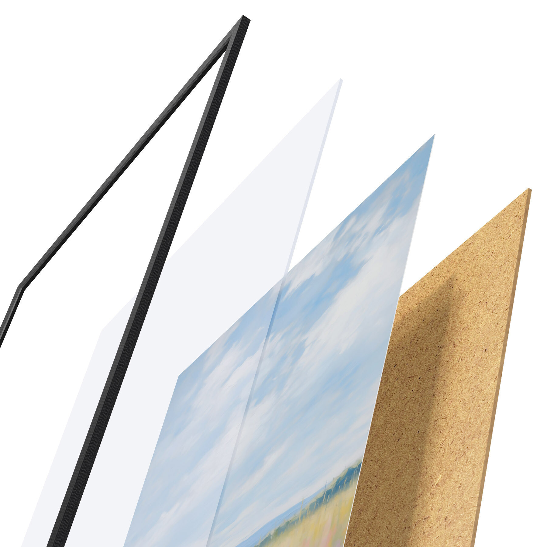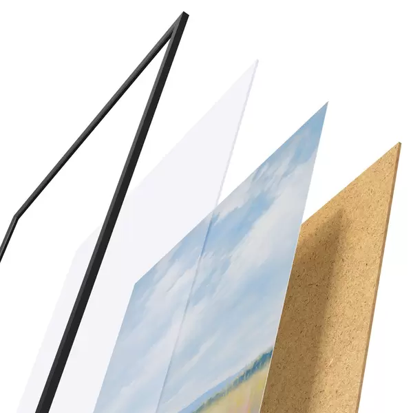 Plakāts sastāv no rāmja, pleksstikla, iespiestā attēla un skaidu plātnes pamatnes. Plakātu var uzreiz piekarināt pie sienas, pateicoties aizmugurē esošajiem stiprinājumiem.