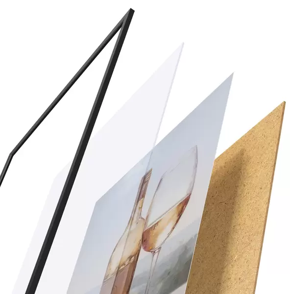 Plakāts sastāv no rāmja, pleksstikla, iespiestā attēla un skaidu plātnes pamatnes. Plakātu var uzreiz piekarināt pie sienas, pateicoties aizmugurē esošajiem stiprinājumiem.
