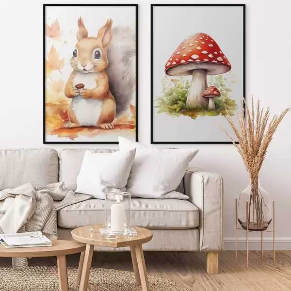 Plakāts Vāvere un meža sēne, mušmiris, imitācija akvareļgleznojums Nr d01049