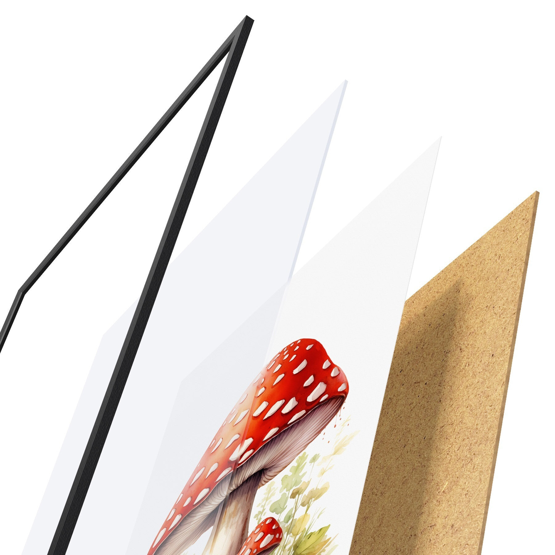 Plakāts sastāv no rāmja, pleksstikla, iespiestā attēla un skaidu plātnes pamatnes. Plakātu var uzreiz piekarināt pie sienas, pateicoties aizmugurē esošajiem stiprinājumiem.