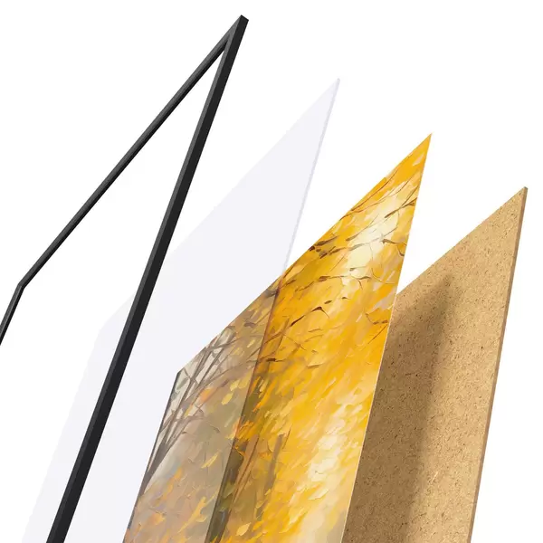 Plakāts sastāv no rāmja, pleksstikla, iespiestā attēla un skaidu plātnes pamatnes. Plakātu var uzreiz piekarināt pie sienas, pateicoties aizmugurē esošajiem stiprinājumiem.