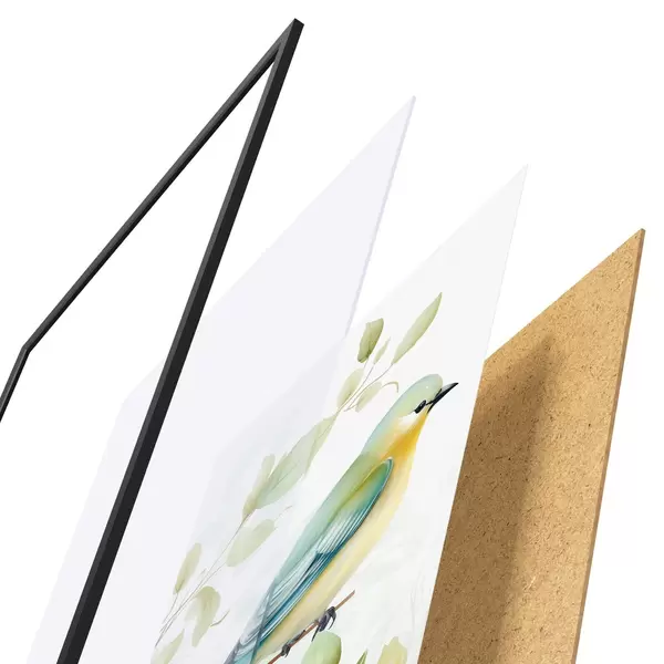 Plakāts sastāv no rāmja, pleksstikla, iespiestā attēla un skaidu plātnes pamatnes. Plakātu var uzreiz piekarināt pie sienas, pateicoties aizmugurē esošajiem stiprinājumiem.