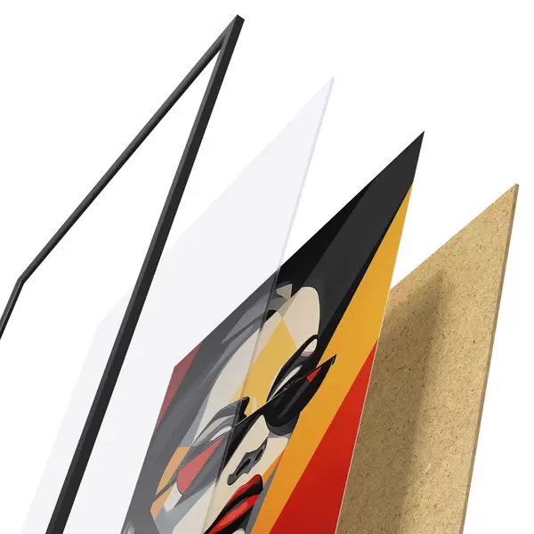 Plakāts sastāv no rāmja, pleksstikla, iespiestā attēla un skaidu plātnes pamatnes. Plakātu var uzreiz piekarināt pie sienas, pateicoties aizmugurē esošajiem stiprinājumiem.