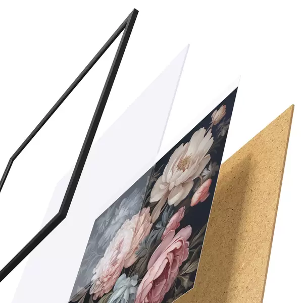 Plakāts sastāv no rāmja, pleksstikla, iespiestā attēla un skaidu plātnes pamatnes. Plakātu var uzreiz piekarināt pie sienas, pateicoties aizmugurē esošajiem stiprinājumiem.