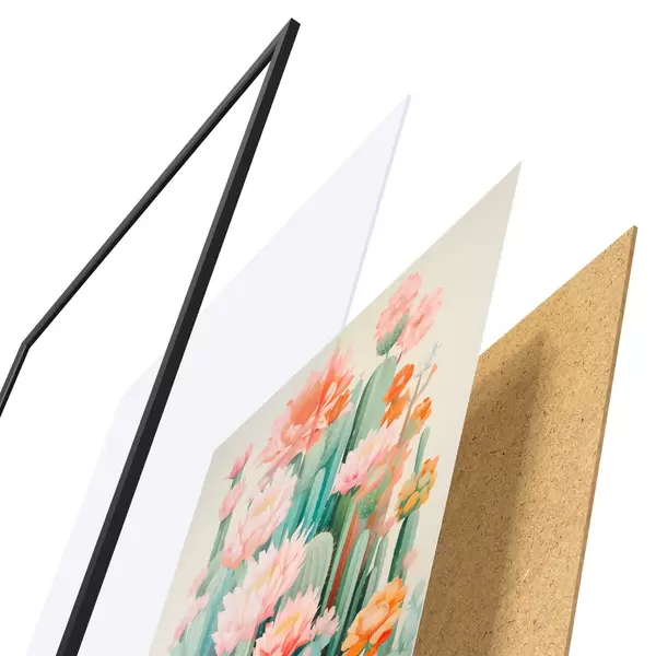 Plakāts sastāv no rāmja, pleksstikla, iespiestā attēla un skaidu plātnes pamatnes. Plakātu var uzreiz piekarināt pie sienas, pateicoties aizmugurē esošajiem stiprinājumiem.